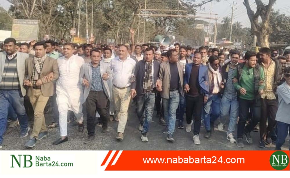 মধুখালীতে ধানের শীষের প্রার্থী খন্দকার নাসিরের সমর্থকদের বিশাল মিছিল